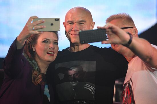 Посетители танцуют во время выступления музыканта, солиста группы "Моральный кодекс" Сергея Мазаева на Международном музыкальном фестивале Koktebel Jazz Party - 2020 в Крыму.22.08.2020#6314124