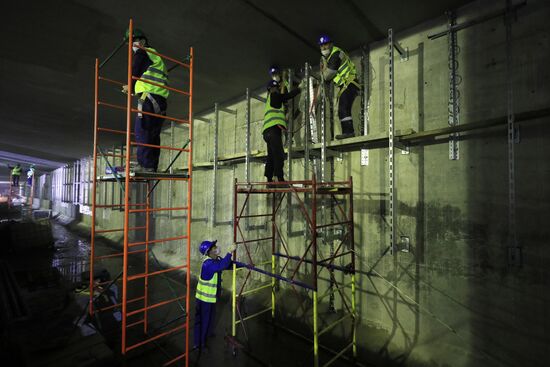 Рабочие на строящейся станции "Улица Народного Ополчения" Большой кольцевой линии (БКЛ) Московского метрополитена. 25.08.2020#6316049