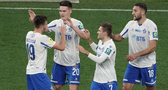 Игроки "Динамо" радуются забитому мячу в матче 10-го тура чемпионата России по футболу среди клубов Премьер-лиги между командами ФК "Динамо" (Москва) и ФК "Краснодар" (Краснодар).04.10.2020#6348934