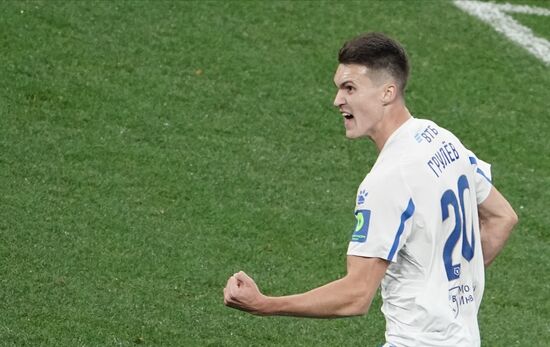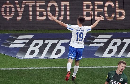 Игрок "Динамо" Даниил Лесовой радуется забитому мячу в матче 10-го тура чемпионата России по футболу среди клубов Премьер-лиги между командами ФК "Динамо" (Москва) и ФК "Краснодар" (Краснодар).04.10.2020#6348937