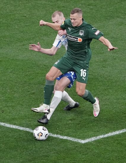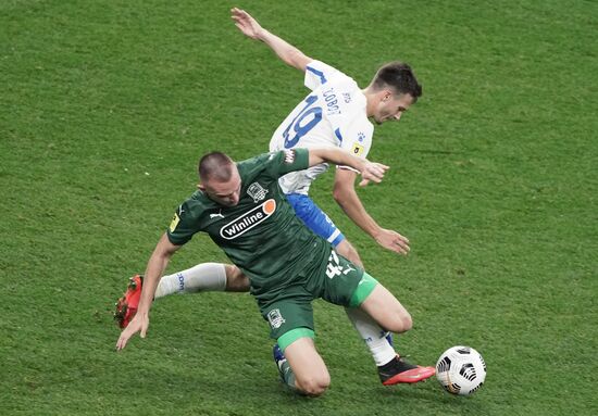 Игрок "Динамо" Вячеслав Грулёв и игрок "Краснодара" Егор Сорокин (справа) в матче 10-го тура чемпионата России по футболу среди клубов Премьер-лиги между командами ФК "Динамо" (Москва) и ФК "Краснодар" (Краснодар).04.10.2020#6348922