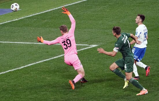Вратарь "Краснодара" Матвей Сафонов (слева) пропускает мяч в матче 10-го тура чемпионата России по футболу среди клубов Премьер-лиги между командами ФК "Динамо" (Москва) и ФК "Краснодар" (Краснодар).04.10.2020#6348938