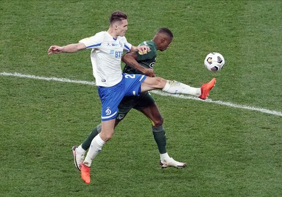 Игрок "Динамо" Даниил Фомин и игрок "Краснодара" Реми Кабелла (справа) в матче 10-го тура чемпионата России по футболу среди клубов Премьер-лиги между командами ФК "Динамо" (Москва) и ФК "Краснодар" (Краснодар).04.10.2020#6348925