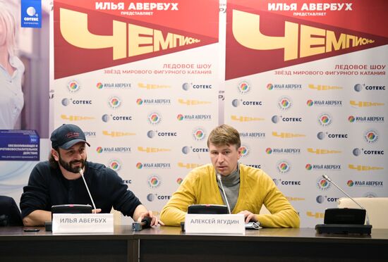 Постановщик и продюсер ледового шоу "Чемпионы" Илья Авербух (слева) и участник шоу олимпийский чемпион по фигурному катанию Алексей Ягудин на пресс-конференции перед началом представления.02.01.2021#6432482
