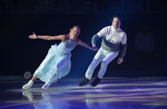Постановщик и продюсер ледового шоу "Чемпионы" Илья Авербух (слева) и участник шоу олимпийский чемпион по фигурному катанию Алексей Ягудин на пресс-конференции перед началом представления.02.01.2021#6432483