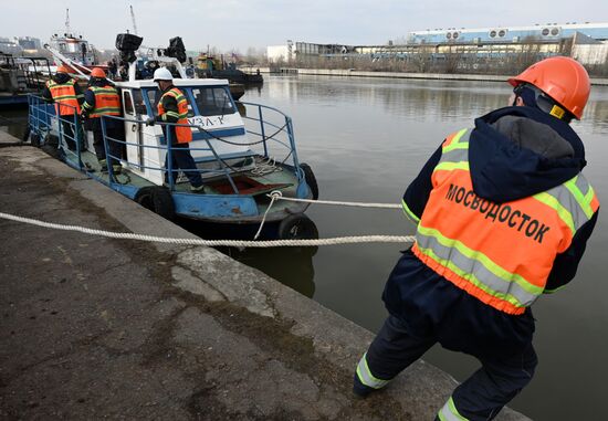 Сотрудники ГУП "Мосводосток" во время подготовки к открытию технической навигации на Москве-реке. 07.04.2021#6510454