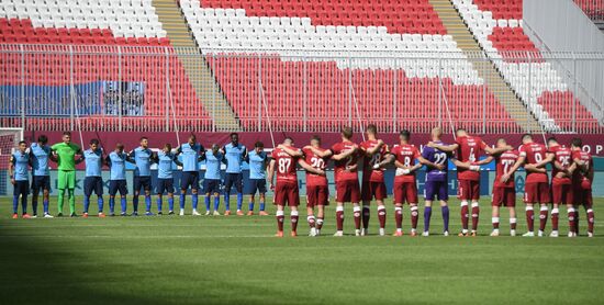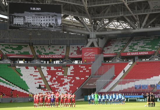 Слева направо: игроки ФК "Рубин" и игроки ФК "Ротор" во время минуты молчания в память о погибших в результате нападения на гимназию № 175 в Казани перед началом матча 30-го тура чемпионата России по футболу среди клубов Премьер-лиги между командами ФК "Рубин" (Казань) и ФК "Ротор" (Волгоград).16.05.2021#6545857