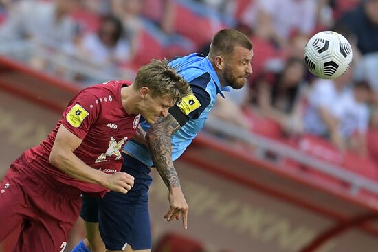 Справа налево: игрок ФК "Ротор" Зурико Давиташвили и игрок ФК "Рубин" Денис Макаров в матче 30-го тура чемпионата России по футболу среди клубов Премьер-лиги между командами ФК "Рубин" (Казань) и ФК "Ротор" (Волгоград).16.05.2021#6546073