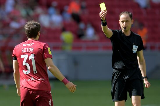 Слева направо: игрок ФК "Рубин" Георгий Зотов и главный судья матча Виталий Мешков в матче 30-го тура чемпионата России по футболу среди клубов Премьер-лиги между командами ФК "Рубин" (Казань) и ФК "Ротор" (Волгоград).16.05.2021#6545939