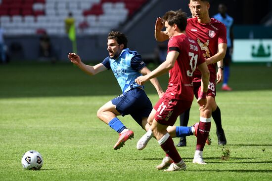 Слева направо: игрок ФК "Ротор" Зурико Давиташвили и игроки ФК "Рубин" Георгий Зотов, Оливер Абильгор в матче 30-го тура чемпионата России по футболу среди клубов Премьер-лиги между командами ФК "Рубин" (Казань) и ФК "Ротор" (Волгоград).16.05.2021#6545956