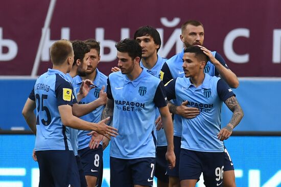 Игроки ФК "Ротор" радуются забитому мячу в матче 30-го тура чемпионата России по футболу среди клубов Премьер-лиги между командами ФК "Рубин" (Казань) и ФК "Ротор" (Волгоград). Справа на первом плане: автор гола, игрок ФК "Ротор" Фламарион.16.05.2021#6546119