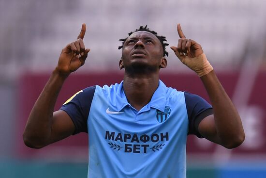 Игрок ФК "Ротор" Седрик Гогуа радуются забитому мячу в матче 30-го тура чемпионата России по футболу среди клубов Премьер-лиги между командами ФК "Рубин" (Казань) и ФК "Ротор" (Волгоград).16.05.2021#6546120