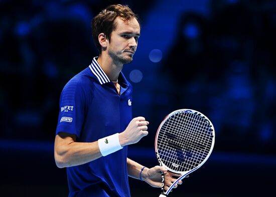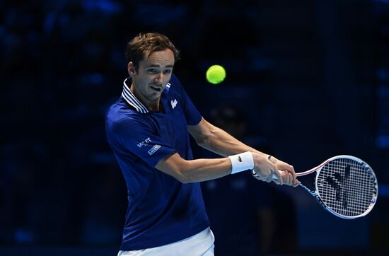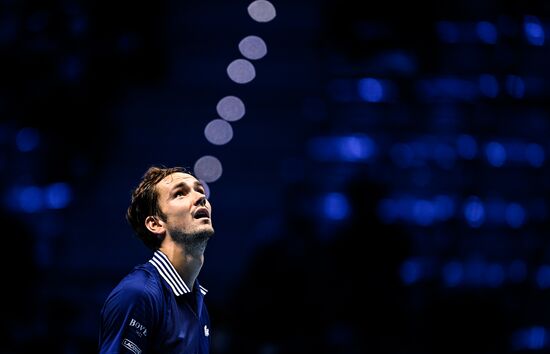 Даниил Медведев (Россия) в матче одиночного разряда итогового турнира Ассоциации теннисистов-профессионалов (АТР) против Янника Синнера (Италия) в Турине.18.11.2021#6699305