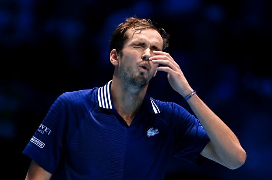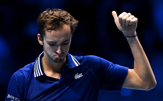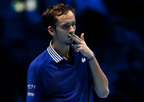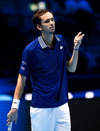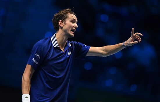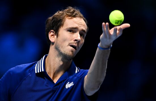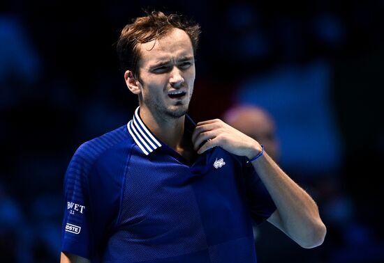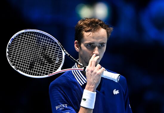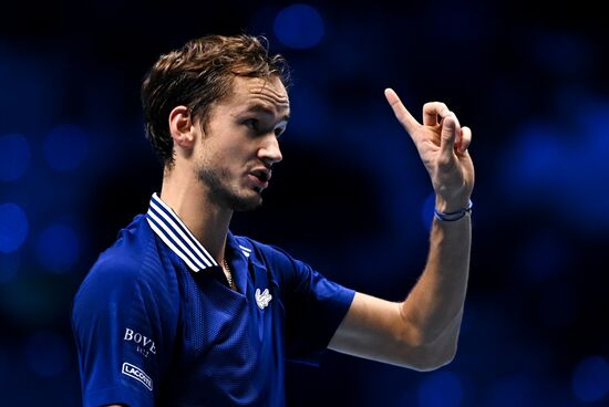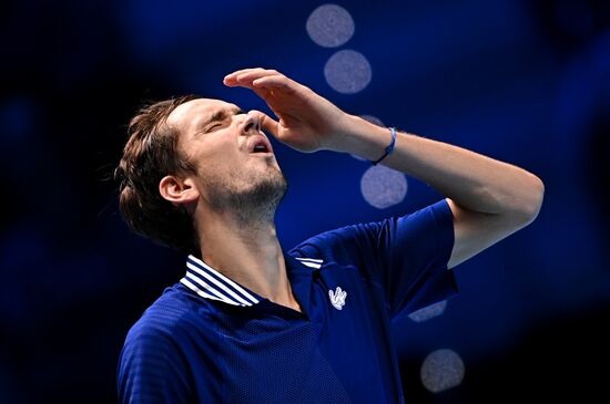 Даниил Медведев (Россия) в матче одиночного разряда итогового турнира Ассоциации теннисистов-профессионалов (АТР) против Янника Синнера (Италия) в Турине.19.11.2021#6699321