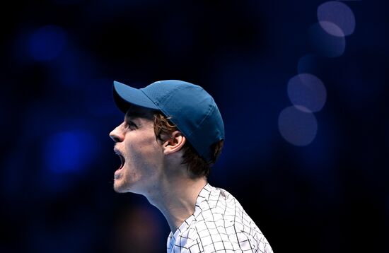 Янник Синнер (Италия) в матче одиночного разряда итогового турнира Ассоциации теннисистов-профессионалов (АТР) против Даниила Медведева (Россия) в Турине.19.11.2021#6699319