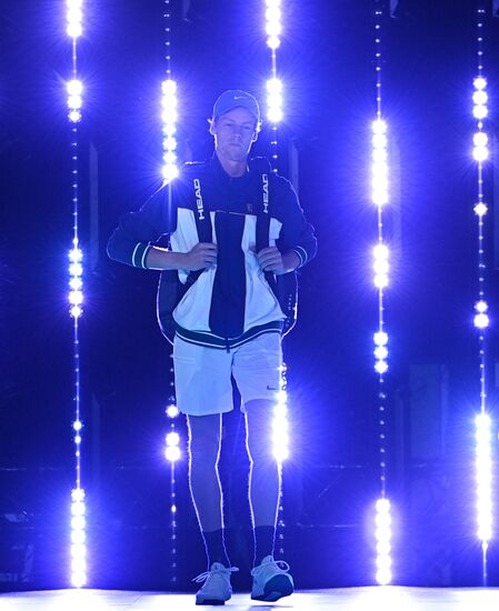 Янник Синнер (Италия) перед началом матча одиночного разряда итогового турнира Ассоциации теннисистов-профессионалов (АТР) против Даниила Медведева (Россия) в Турине.18.11.2021#6699297
