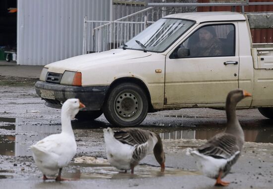 Гуси на одной из улиц в станице Новомарьевской Ставропольского края. В соседней станице Новотроицкой на территории птицефабрики ООО "Агро-плюс" был выявлен очаг птичьего гриппа.11.02.2022#8111409