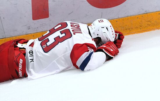 Игрок ХК "Локомотив" Даниил Мисюль получил травму в матче 1/2 финала Западной конференции плей-офф Кубка Гагарина Континентальной хоккейной лиги сезона 2022/2023 между ПХК ЦСКА (Москва) и ХК "Локомотив" (Ярославль).29.03.2023#8401131