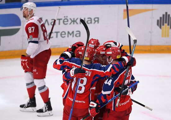 Игрок ПХК ЦСКА Андрей Светлаков радуется заброшенной шайбе в матче 1/2 финала Западной конференции плей-офф Кубка Гагарина Континентальной хоккейной лиги сезона 2022/2023 между ПХК ЦСКА (Москва) и ХК "Локомотив" (Ярославль).29.03.2023#8401164