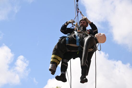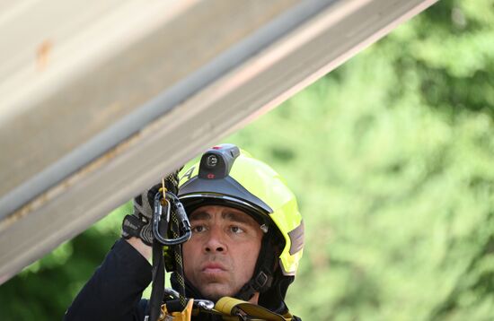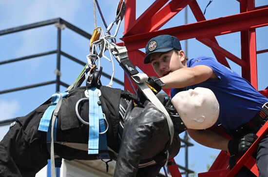 Участники городского конкурса профессионального мастерства по профессии "Спасатель" на учебно-тренировочном полигоне в деревне Апаринки в Московской области. 29.06.2023#8469708