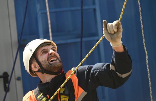 Участник городского конкурса профессионального мастерства по профессии "Спасатель" на учебно-тренировочном полигоне в деревне Апаринки в Московской области. 29.06.2023#8469714