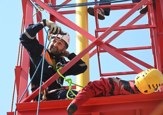 Участники городского конкурса профессионального мастерства по профессии "Спасатель" на учебно-тренировочном полигоне в деревне Апаринки в Московской области. 29.06.2023#8469737