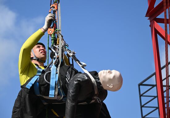 Участник городского конкурса профессионального мастерства по профессии "Спасатель" на учебно-тренировочном полигоне в деревне Апаринки в Московской области. 29.06.2023#8469740