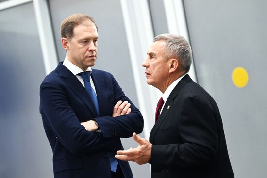 21 февраля 2024. Заместитель председателя правительства РФ - министр промышленности и торговли РФ Денис Мантуров (слева) и глава Республики Татарстан Рустам Минниханов перед началом встречи президента РФ Владимира Путина и президента Узбекистана Шавката Мирзиеева в Казани.21.02.2024#8625758
