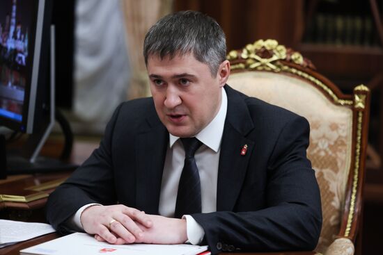10 марта 2025. Президент Владимир Путин и губернатор Пермского края Дмитрий Махонин (справа) во время встречи.10.03.2025#8875679