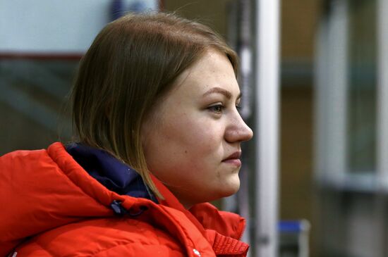 Игрок женской сборной России по хоккею Мария Баталова во время тренировки в краевом центре хоккея "Амур" в Хабаровске.03.02.2018#3286471