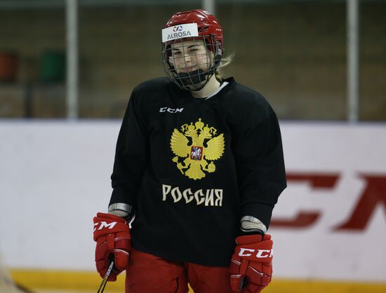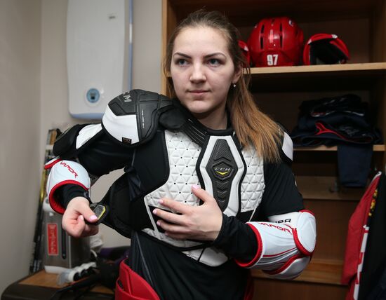 Игрок женской сборной России по хоккею Нина Пирогова во время тренировки в краевом центре хоккея "Амур" в Хабаровске.03.02.2018#3286600