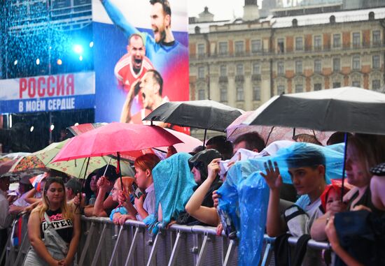 Сборная России по волейболу выступает на праздничном концерте "Россия в моем сердце" на Манежной площади в Москве.28.07.2018#5600712